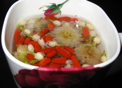 枸杞子6克,白菊花6克,泡水代茶。